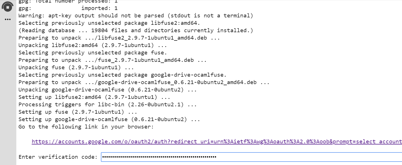 !echo {vcode} | google-drive-ocamlfuse -headless -id={creds.client_id} -secret={creds.client_secret}